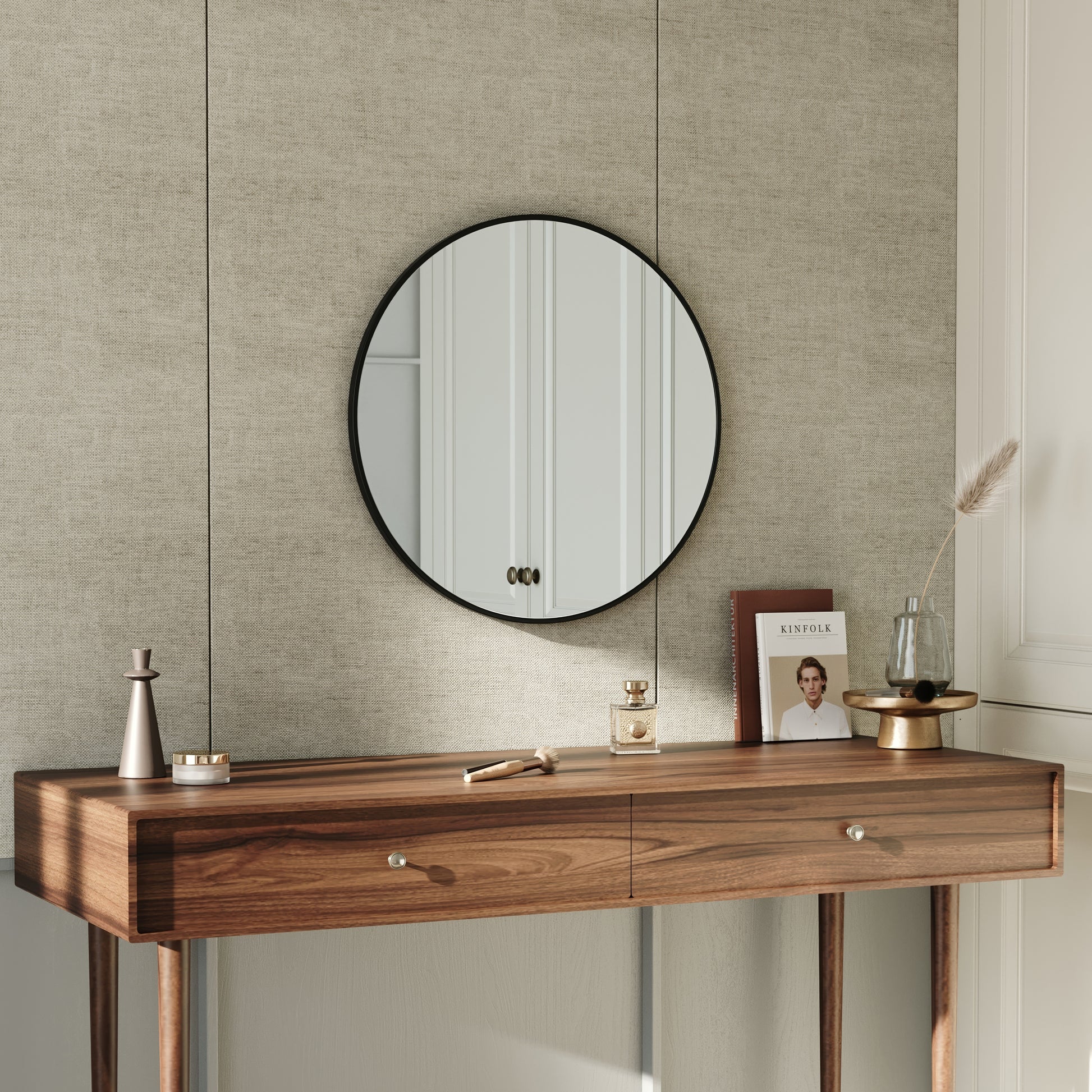 The Nordic Round Mirror redefines the traditional bathroom mirror. The item has a clean and minimalist design, perfect for a quick check of your makeup before heading out. Its rounded shape and stylish frame create a timeless and versatile product that fits a variety of bathroom aesthetics. In addition to its primary function as a vanity mirror, it doubles as a decorative accent that suits contemporary bathrooms and hallways alike.