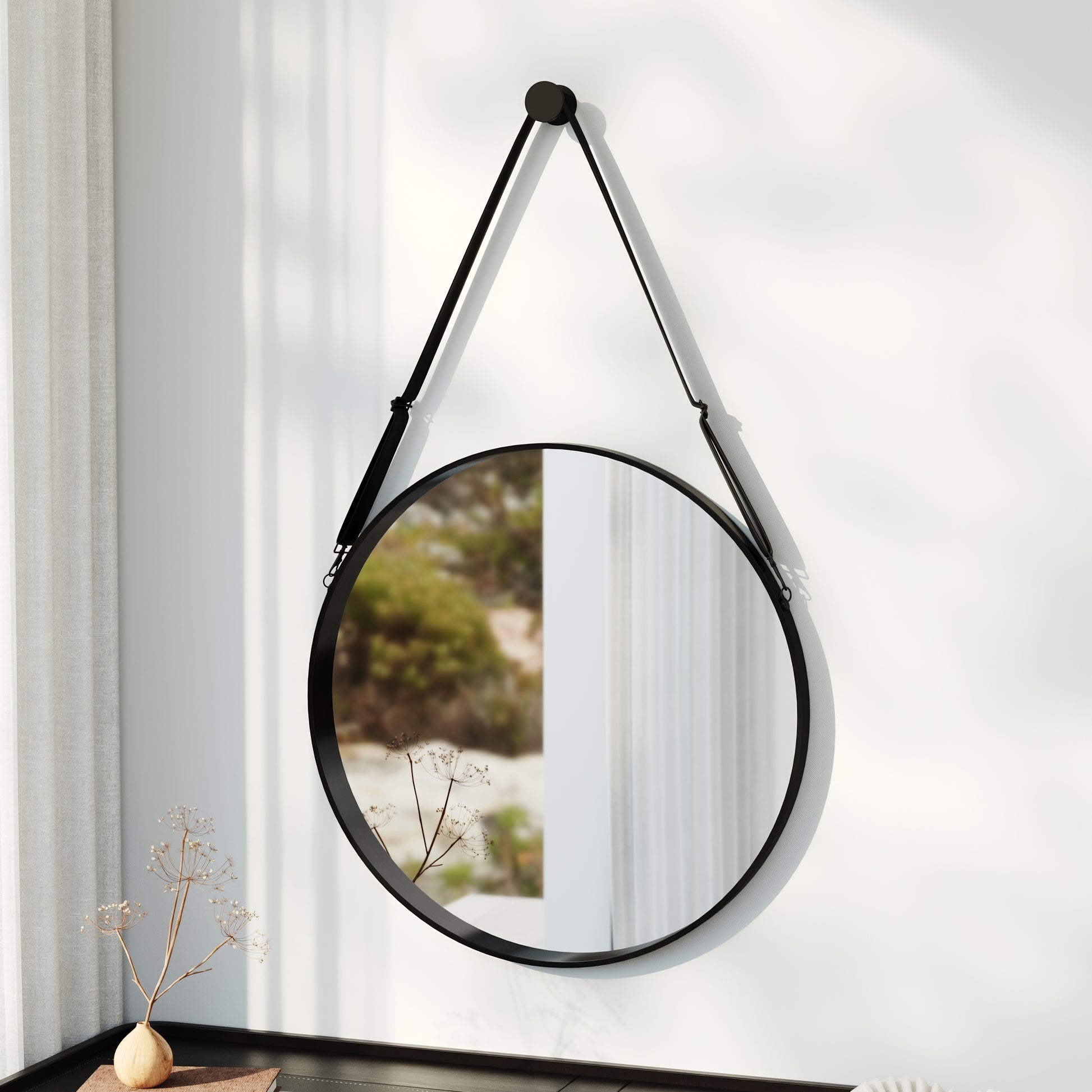 Enhance your interior aesthetic with our stylish wall mirror! The minimalist Nordic design brings a clean and elegant feel to any room. Its classic round shape is both beautiful and practical, complemented by black frame, adding style and charm to your bathroom or dressing area. Made with high-definition float glass, it offers a crystal-clear reflection, true and natural. A robust hanging loop and a refined non-slip PU leather strap ensure its practicality and stability. Easy to install with glue or screws, it is a breeze to put up.