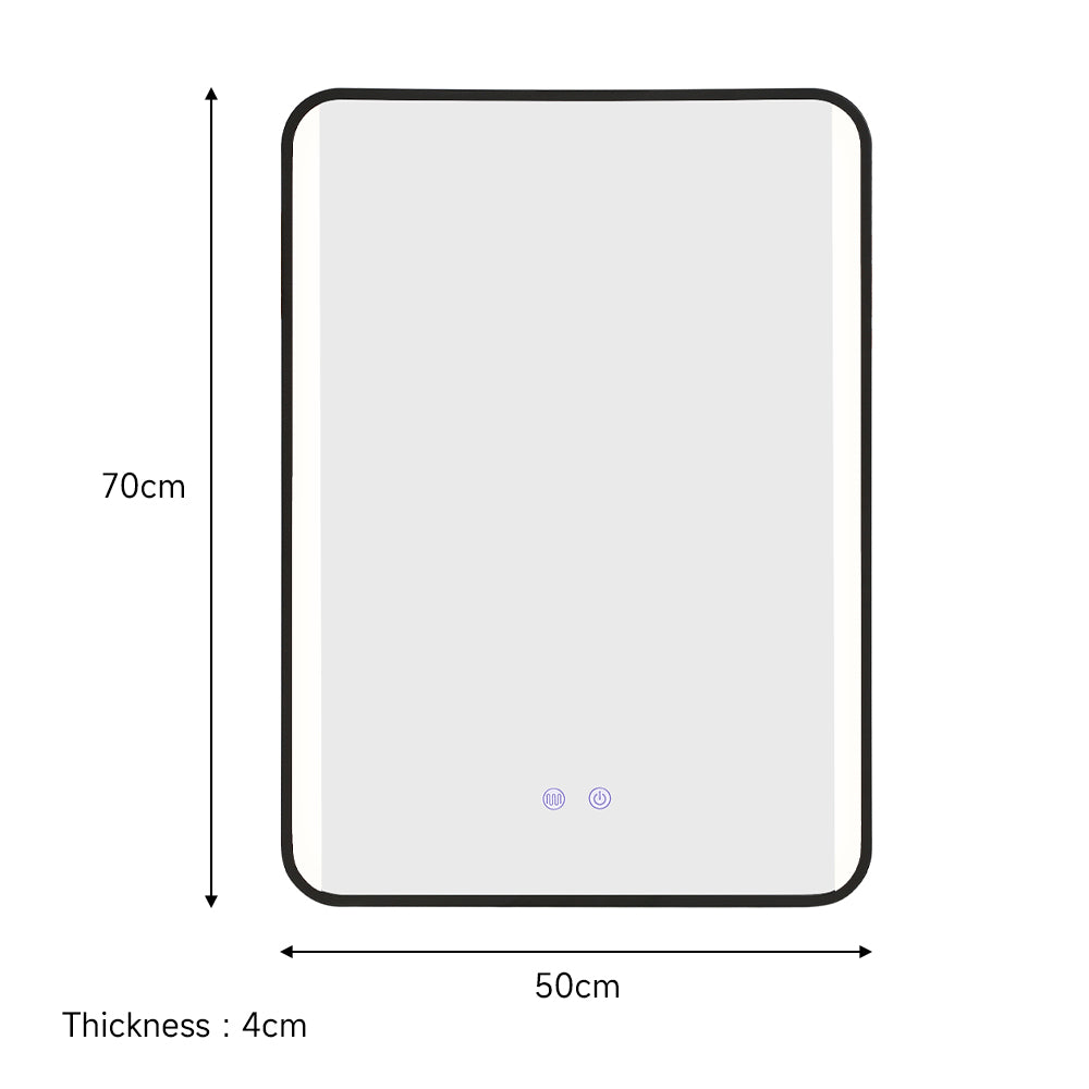 Add the perfect finishing touch to your bathroom with this LED mirror. Its sleek frame design, coupled with rounded corners, creates a visually appealing focal point, updating your bathroom ensemble. The built-in LED lights allow you to adjust the brightness and tune to your preference, providing optimal lighting for your grooming needs. Additionally, the mirror has a rating of IP44 to guarantee durability and protection against water splashes.