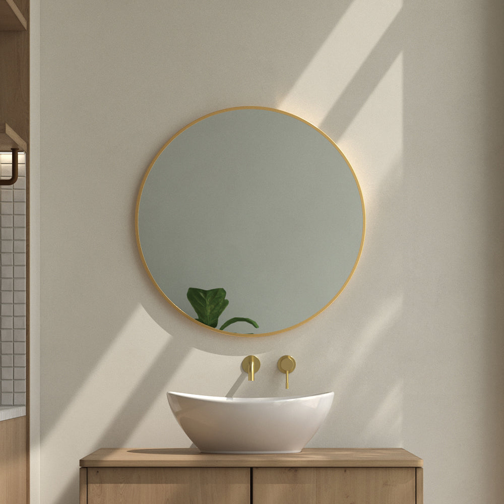 Elevate the aesthetic of your home with this stunning round mirror. Featuring a high-definition glass surface for crystal-clear reflections, it is framed by a robust metal border that offers both durability and a touch of sophisticated texture. Its classic circular design boasts smooth lines and a minimalist appeal, perfectly aligning with contemporary design trends. This versatile mirror effortlessly complements a range of interior styles, enhancing the overall decorative impact of your space. Ideal for bedrooms, bathrooms, living rooms, or hallways, it is more than just a functional mirror; it is a stylish art piece that adds beauty and refinement to any room.